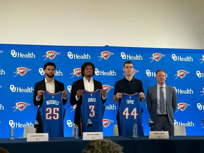 雷霆本赛季的表现依然强劲,目前以15胜1负的战绩稳坐联盟第一,同时也豪取7连胜。谁能想到,在伤了杰威的情况下,这支上赛季68胜的劲旅竟打出更疯狂的开局,剑指70胜神迹。 所有人都在谈论SGA的MVP级表现,惊叹霍姆格伦的全明星潜质,却忽略了那个拿着300万年薪的次轮秀——阿杰伊·米切尔。这个上赛季还在总冠军队伍里打酱油的边缘人,如今以场均16.1分的表现稳居球队第三得分点,用近乎翻倍的得分涨幅,书写着NBA最励志的逆袭故事。