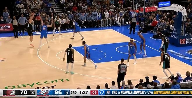 雷霆124-95大胜开拓者,这场比赛雷霆上半场就领先18分之多,第三节一波流拉开到20分以上,SGA直接三节就打卡了,雷霆的先发没有一人登场时间超过29分钟,这两队球队的硬实力差距太大,也因为太早进入垃圾时间杨瀚森获得了登场机会打了10分50秒怒砍3分5篮板。