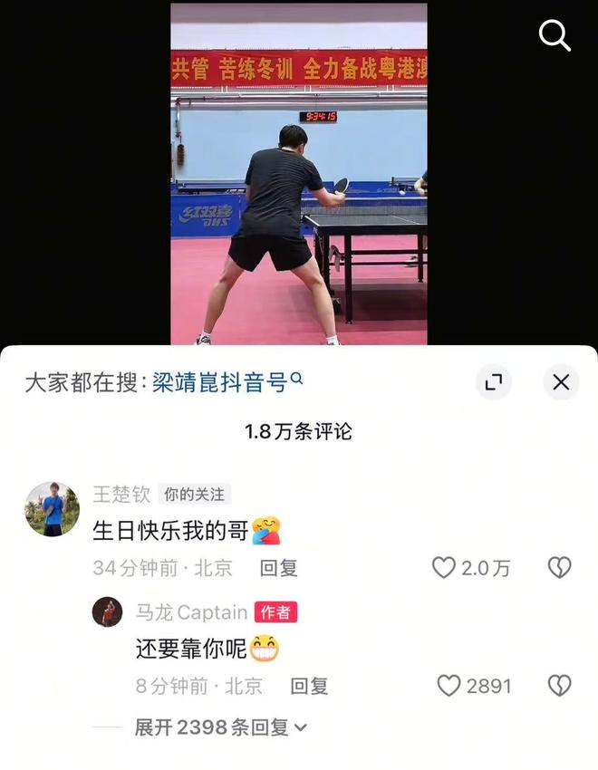 马龙社媒回复王楚钦生日祝福:还要靠你呢