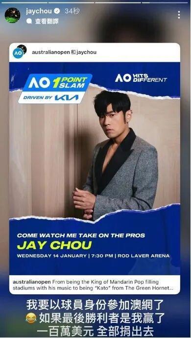 炸!周杰伦今晚打进澳网胜负已分!带着捐出100万澳币的豪气登场
