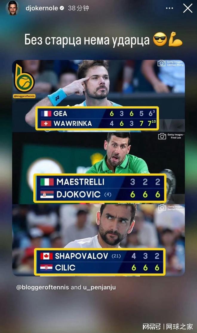 澳网男女单32强产生!德约瓦林卡西里奇三老将晋级!