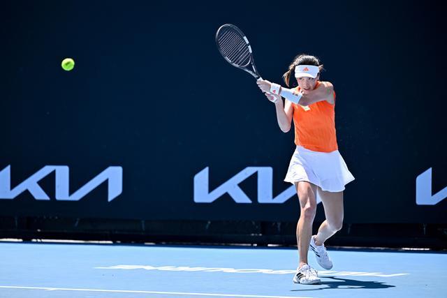 1月22日,在女单次轮对阵赛会24号种子奥斯塔彭科,中国金花在首盘落败的情况下顽强反击,最终以4比6、6比4、6比4逆转晋级。