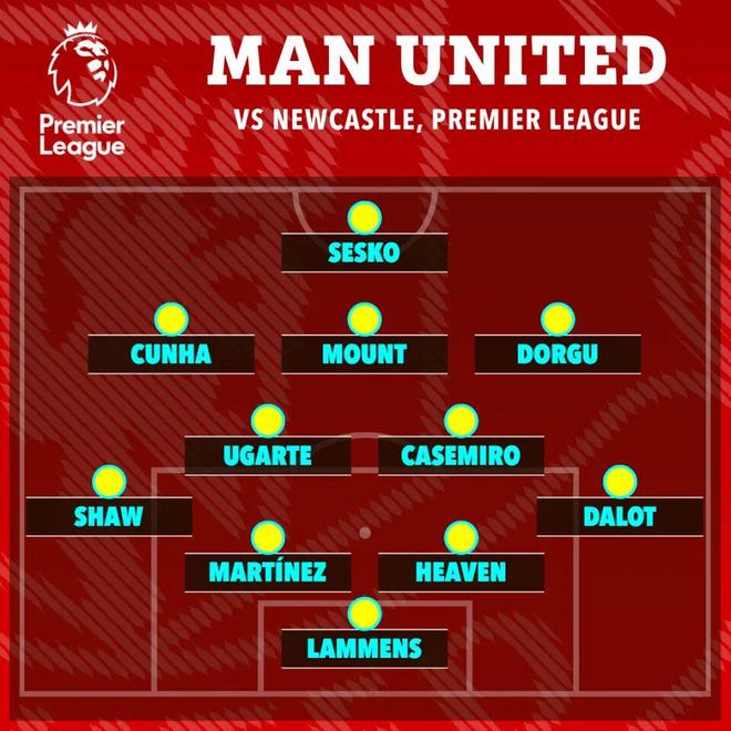 这一变阵可能出乎了纽卡斯尔的意料之外,因为赛前曼联的训练中还是演练三中卫阵型,利桑德罗·马丁内斯站在右中卫位置,施放「烟雾弹」。比赛开始后不久,纽卡斯尔门将拉姆斯代尔倒地要求队医入场治疗,曼联名宿加里·内维尔怀疑这是一次战术性受伤,是为了方便埃迪豪对球员下达指令应对阿莫林的新阵型。
